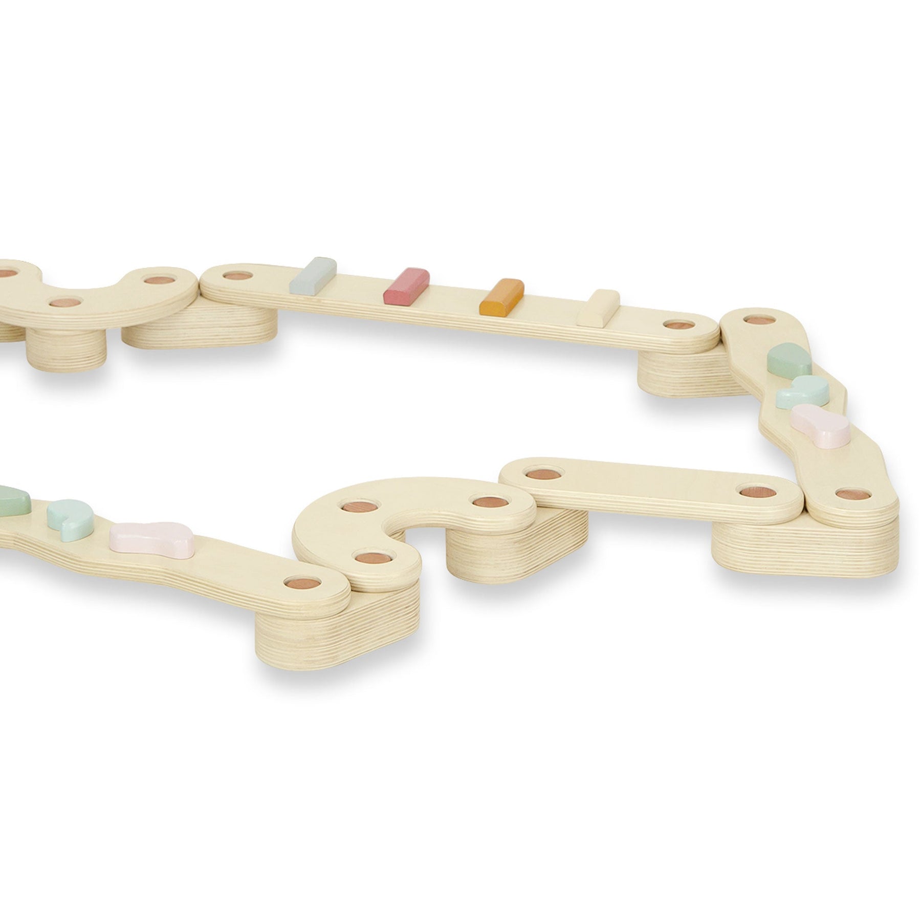 • 8 High-Quality Beams: These beautiful beams are built to withstand hours of active play. Four beams are enhanced with pastel-coloured obstacles for added texture and challenge, and can be reversed to be kept out of the way.